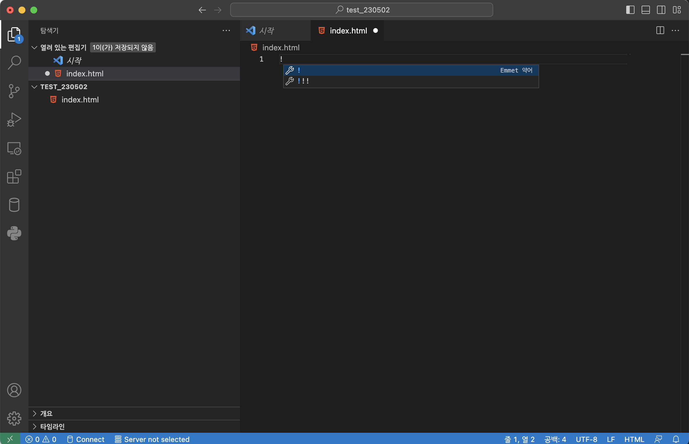 - 빈 html 파일에서 "html:5" 입력